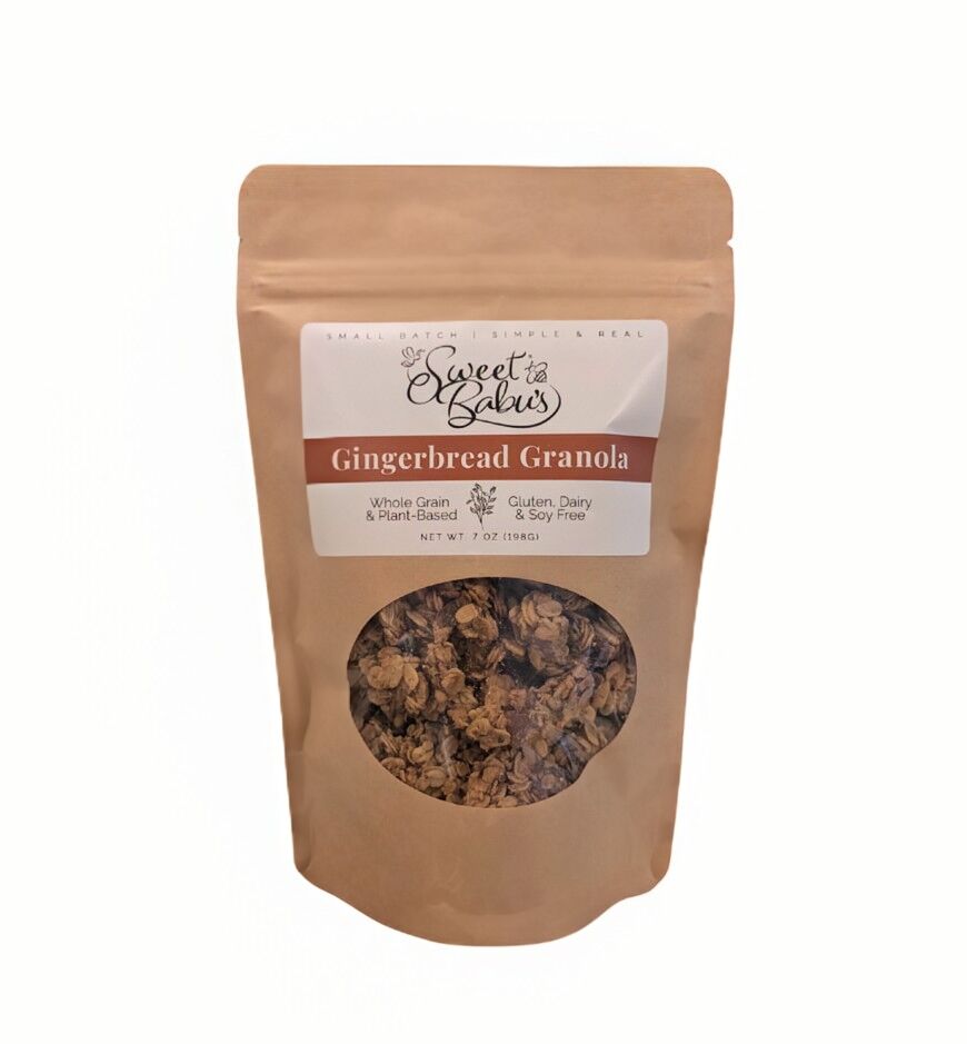 Organic Gluten Free Rolled Oats, Pure Maple Syrup, Organic Pumpkin Seeds, Organic Candied Ginger, Organic Coconut Oil & Avocado Oil Blend, Brown Sugar, Organic Brown Rice Crisps, Molasses, Organic Chia Seeds, Organic Flaxseed, Organic Ground Ginger, Organic Cinnamon, Pure Vanilla Extract, Sea Salt, Organic Nutmeg, and Organic Ground Clove.